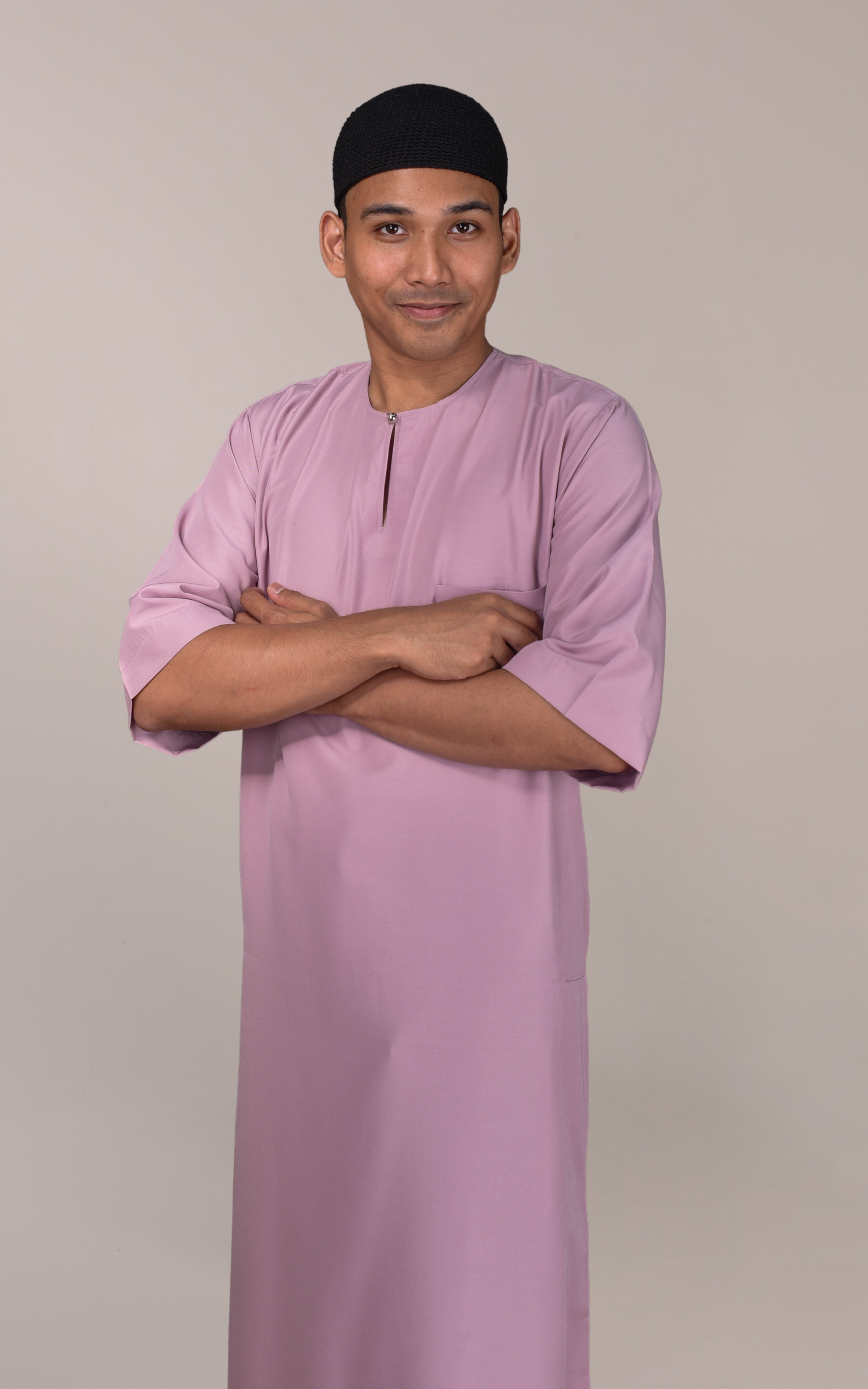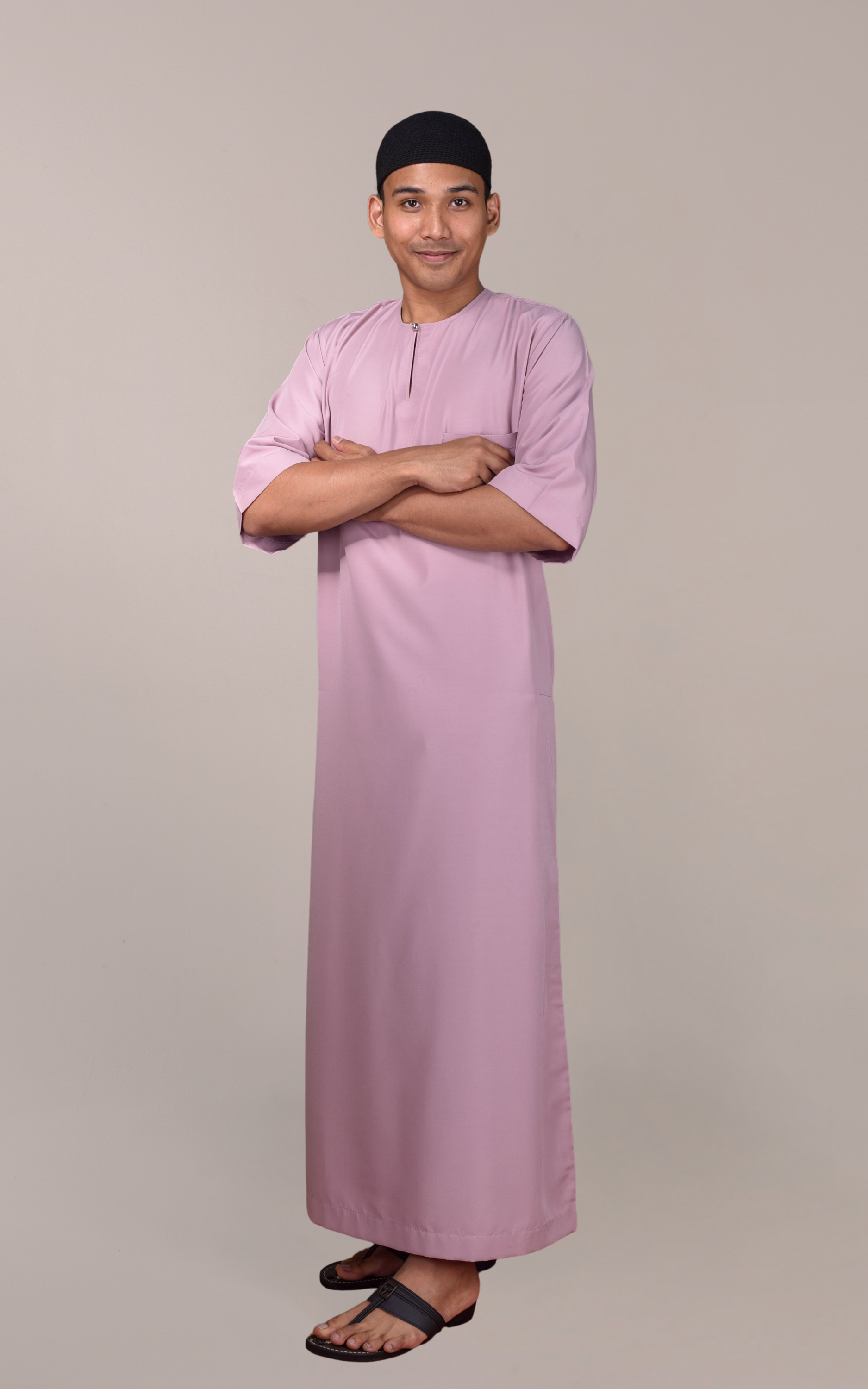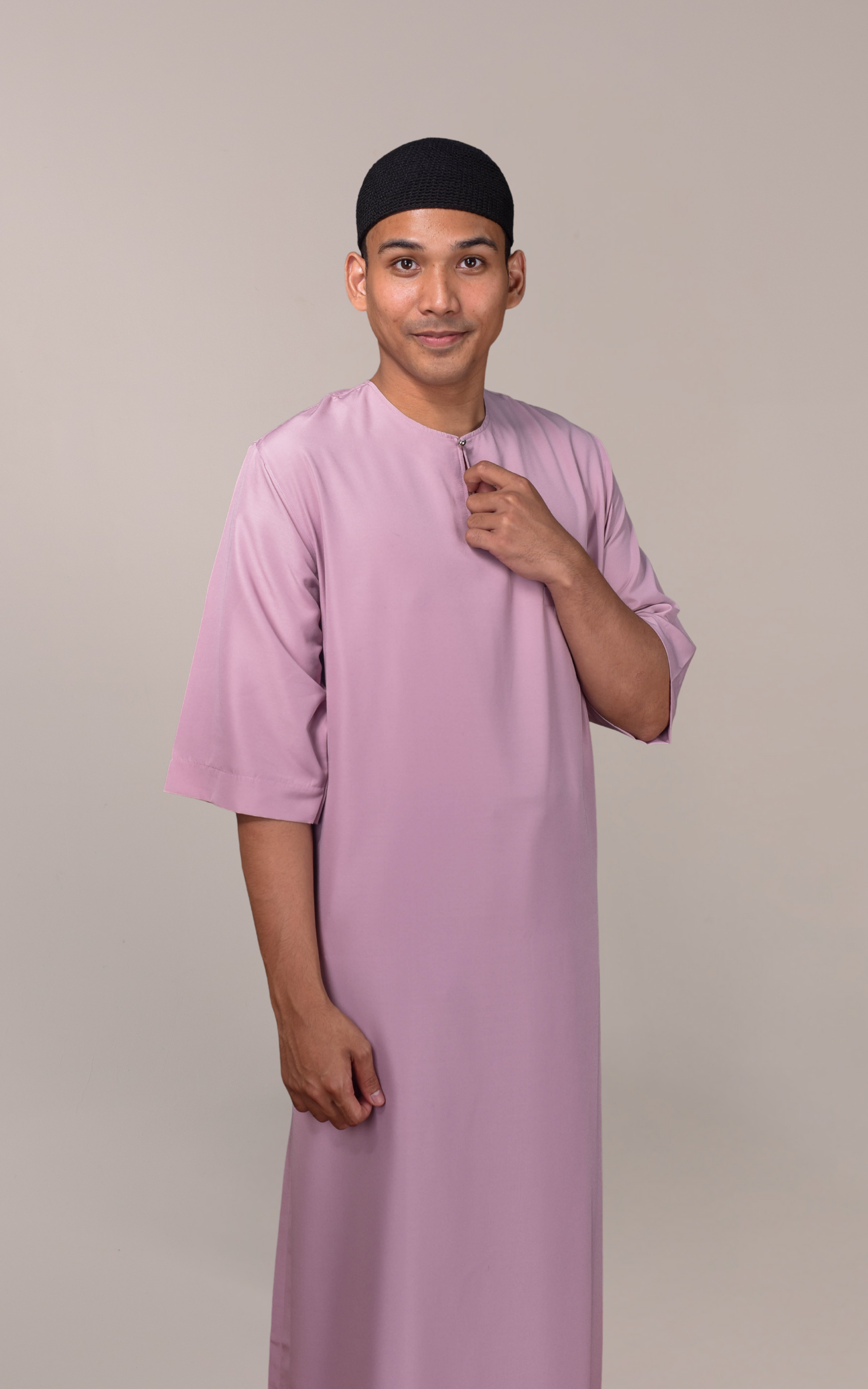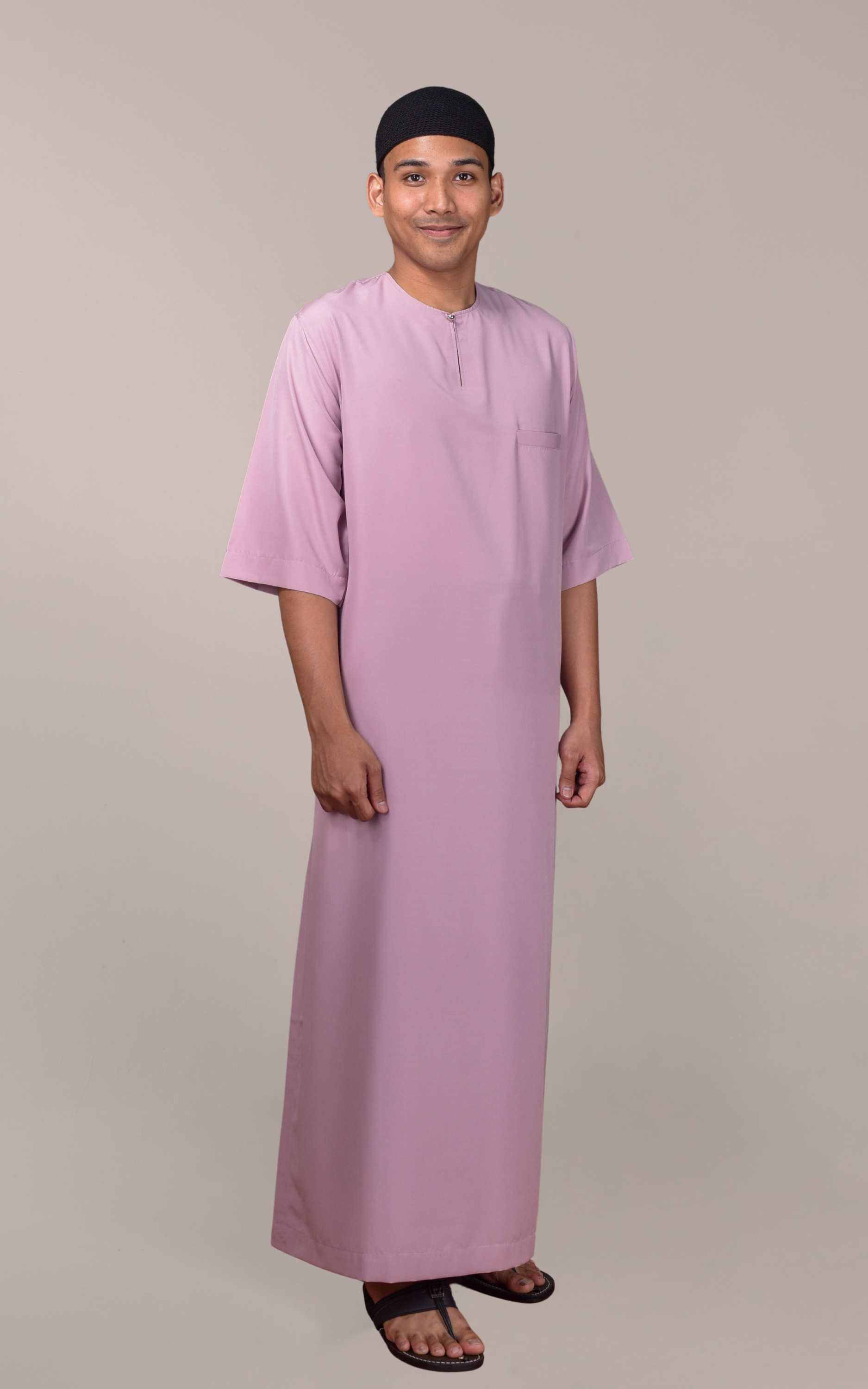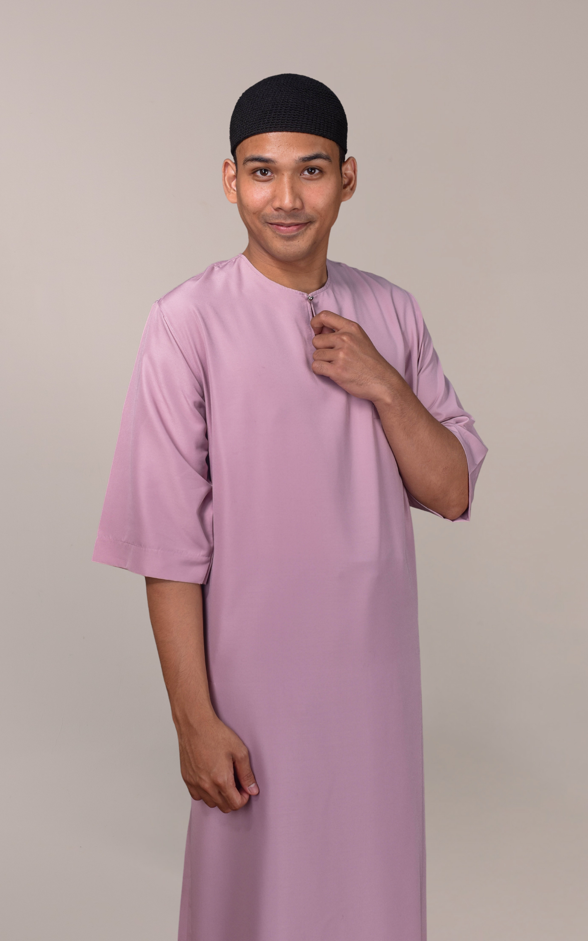 Dilengkapi potongan lengan tiga suku yang memudahkan pergerakan, terutama ketika mengambil wuduk, serta leher teluk belanga yang memberikan gaya klasik maskulin yang sopan. Potongan longgar mesra ibadah memudahkan pergerakan ketika solat, tawaf dan saie di Tanah Suci sambil mengekalkan aurat dengan baik.