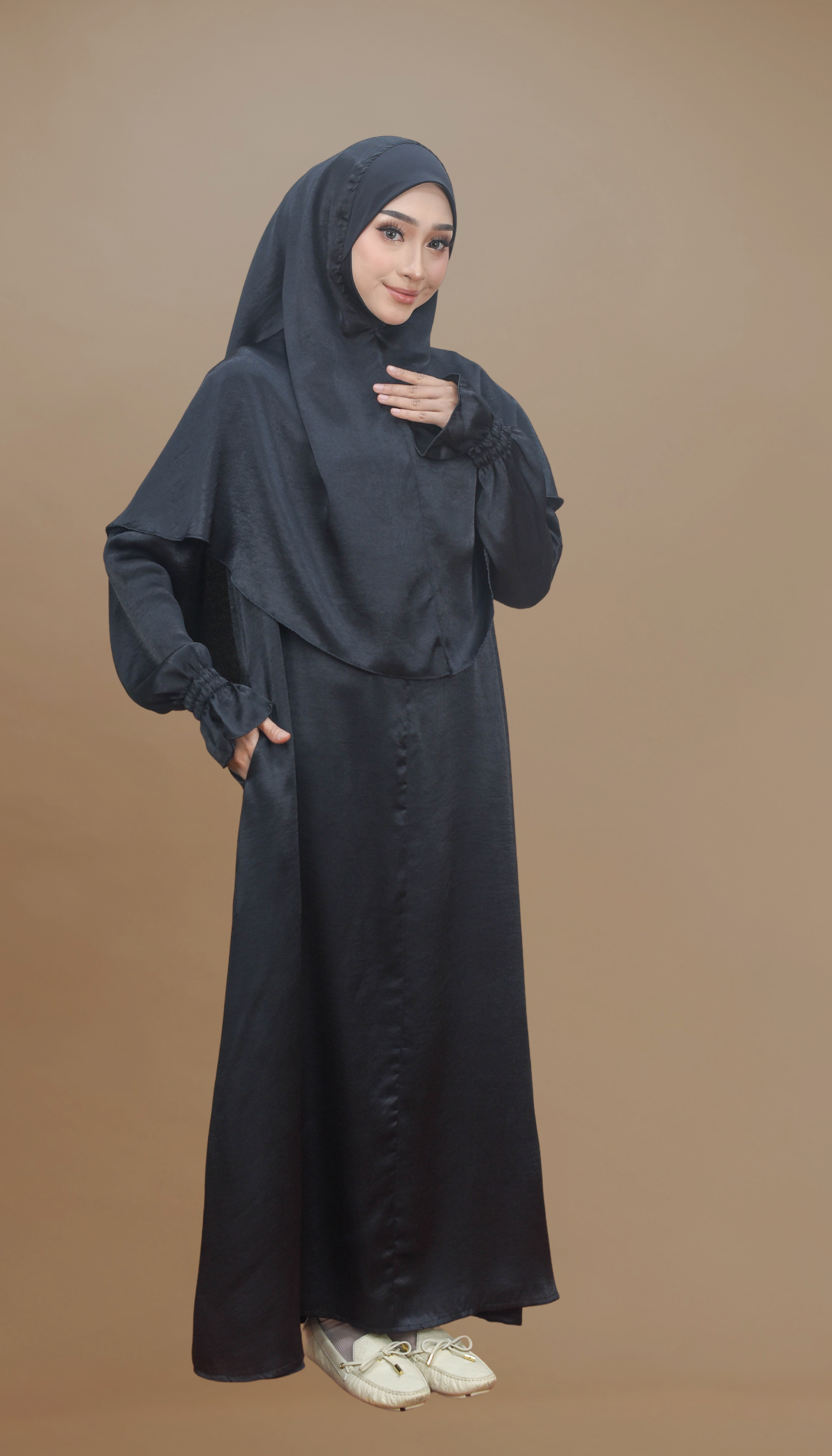 Faraza Zahra Jubah Umrah Muslimah - Set Serra in Black