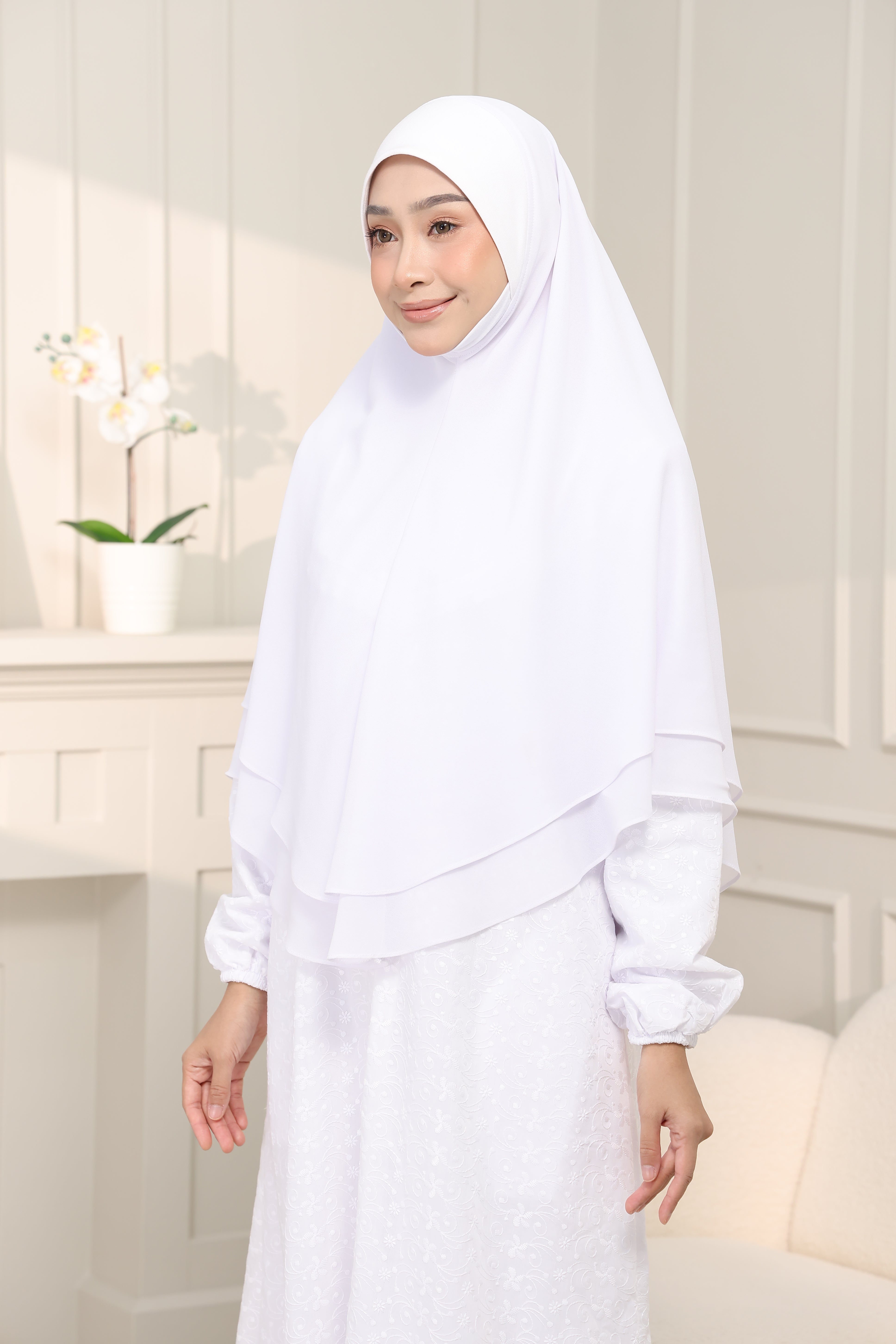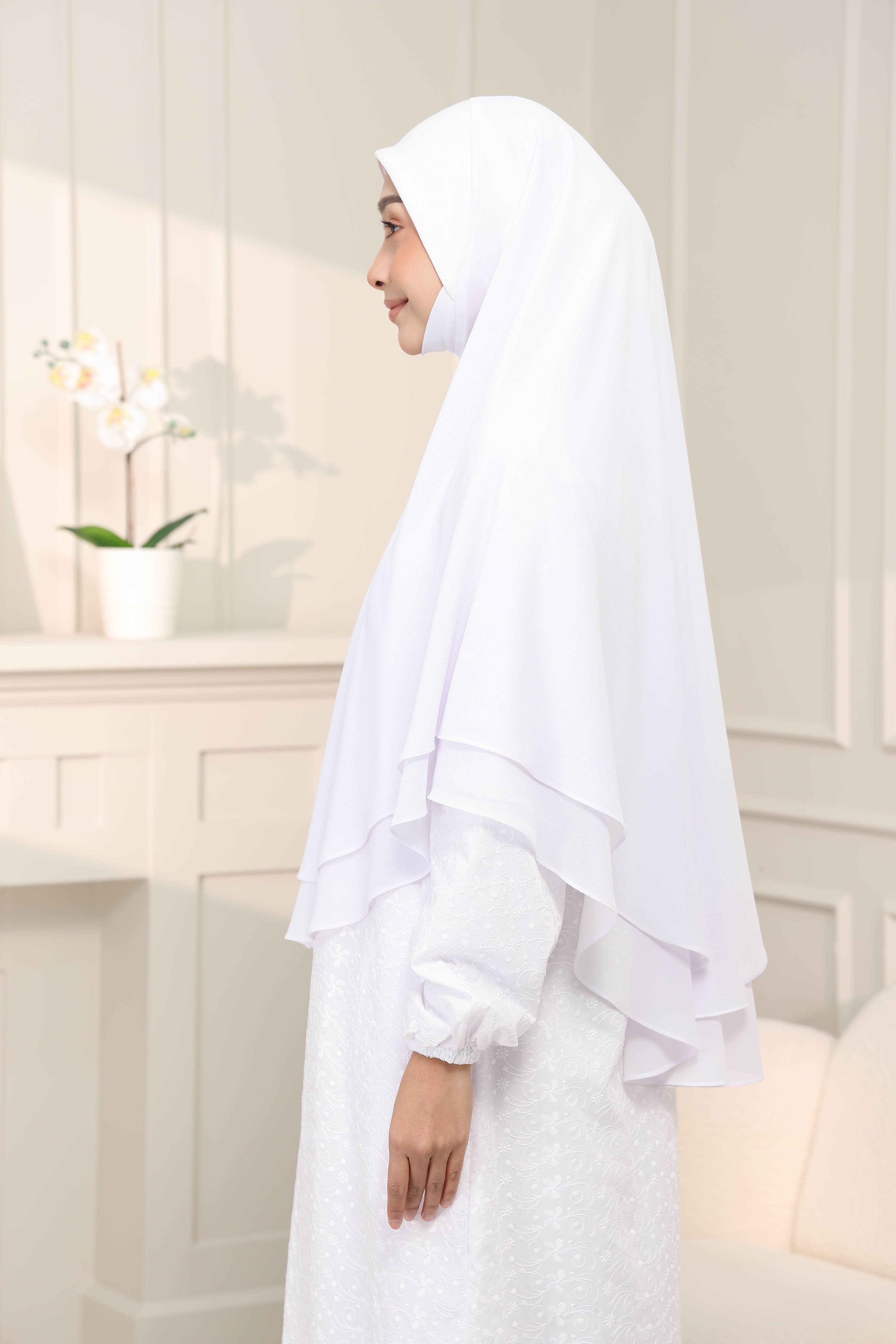 Faraza Zahra Khimar/Tudung Umrah Haji - Eksklusif 2 Layer Chiffon Premium