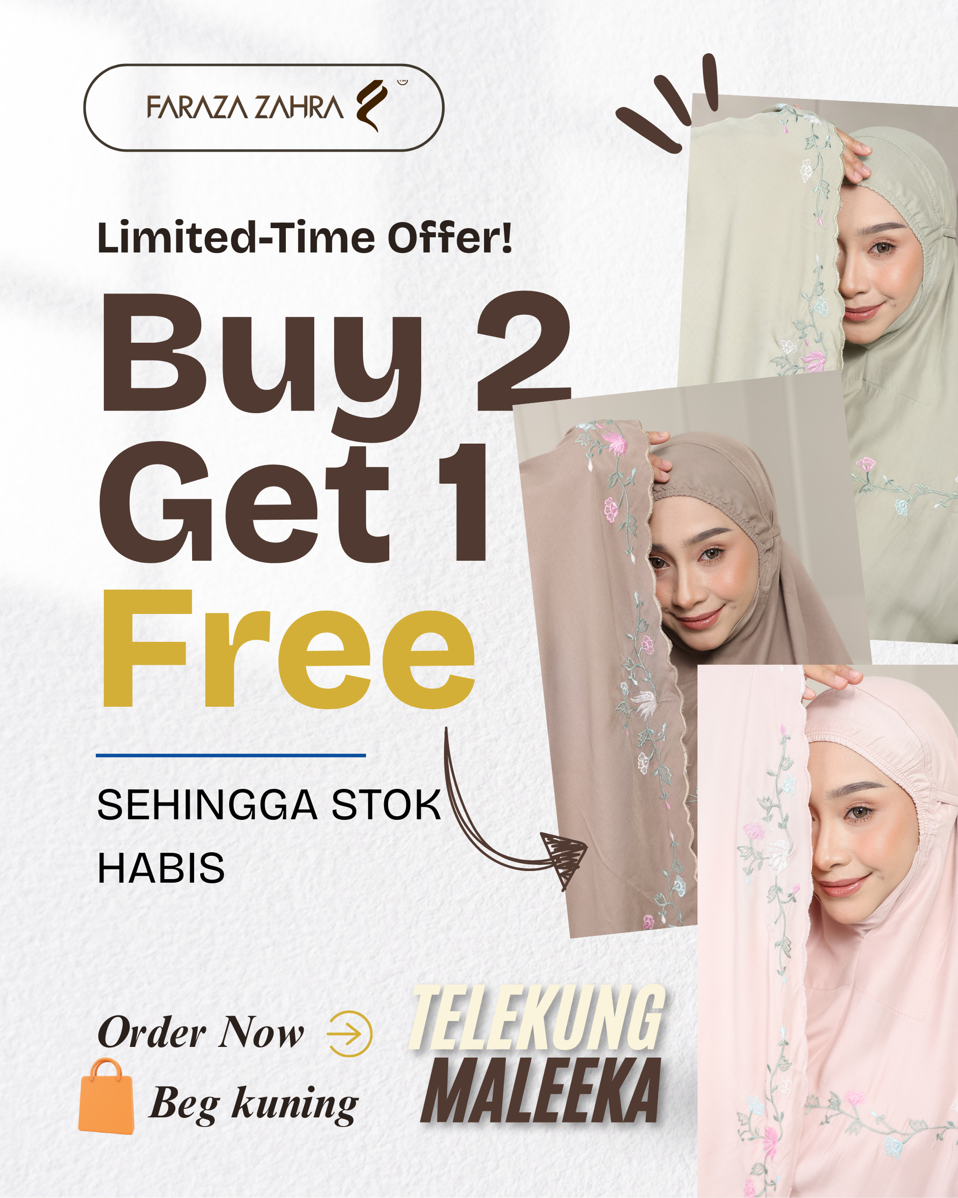 Sempurnakan penampilan ibadah anda dengan Faraza Zahra – pilihan tepat untuk mereka yang sukakan kesederhanaan bergaya.