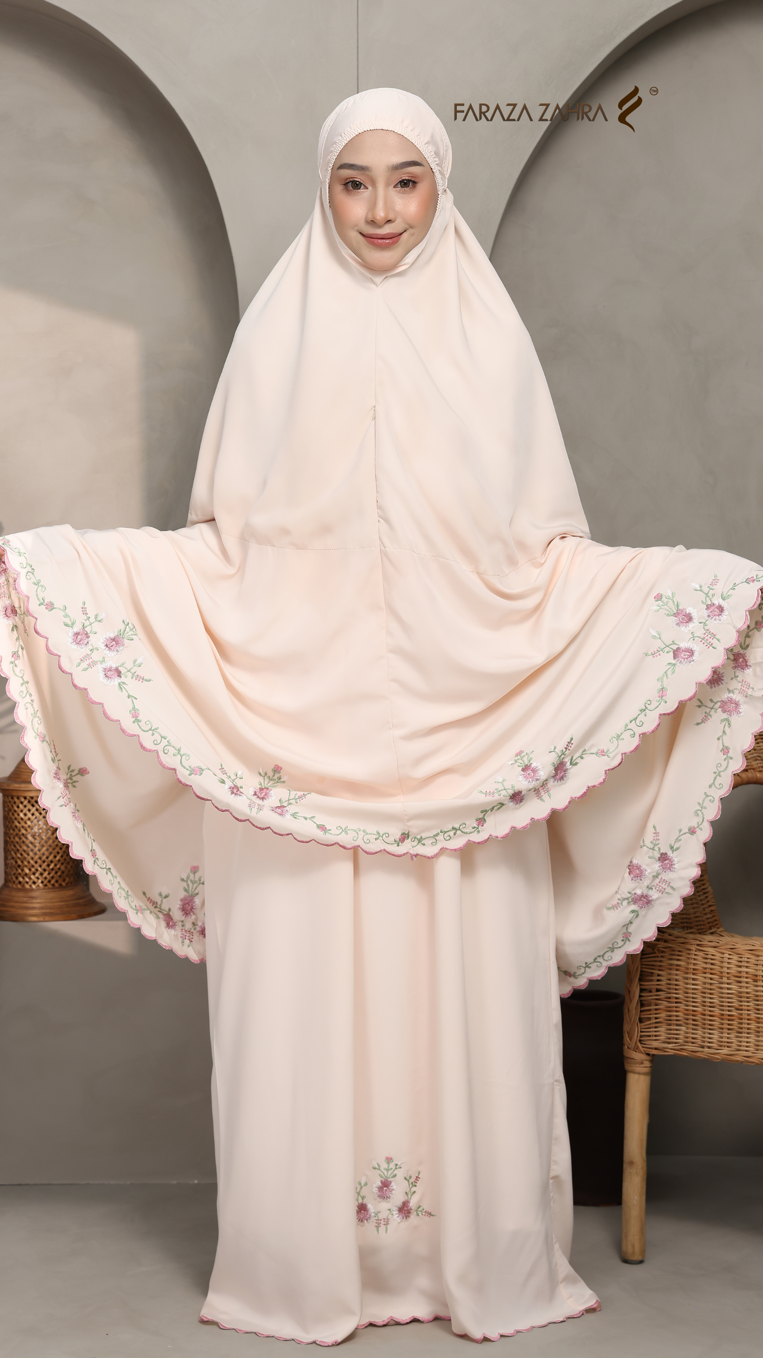 Sempurnakan penampilan ibadah anda dengan Faraza Zahra – pilihan tepat untuk mereka yang sukakan kesederhanaan bergaya.
