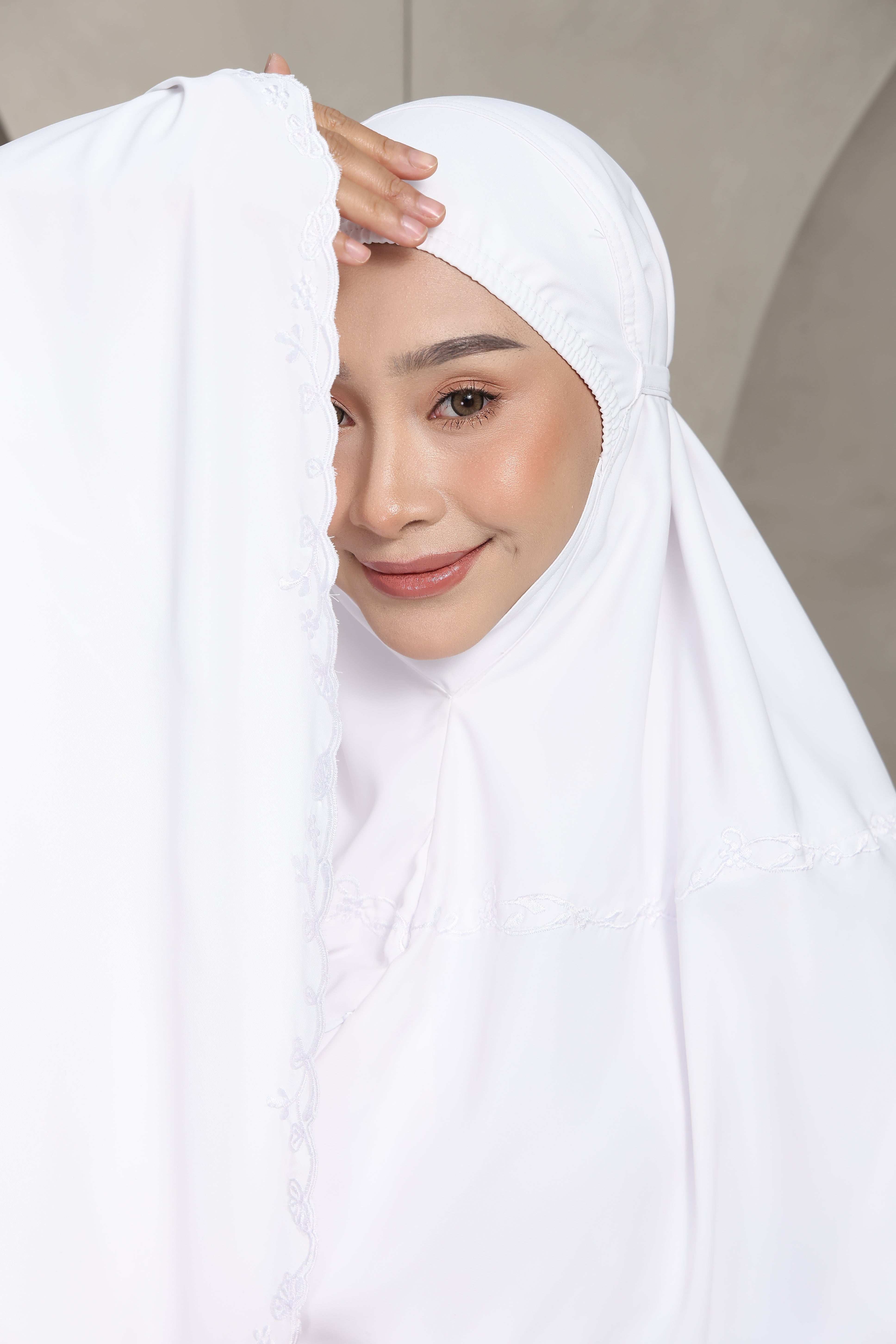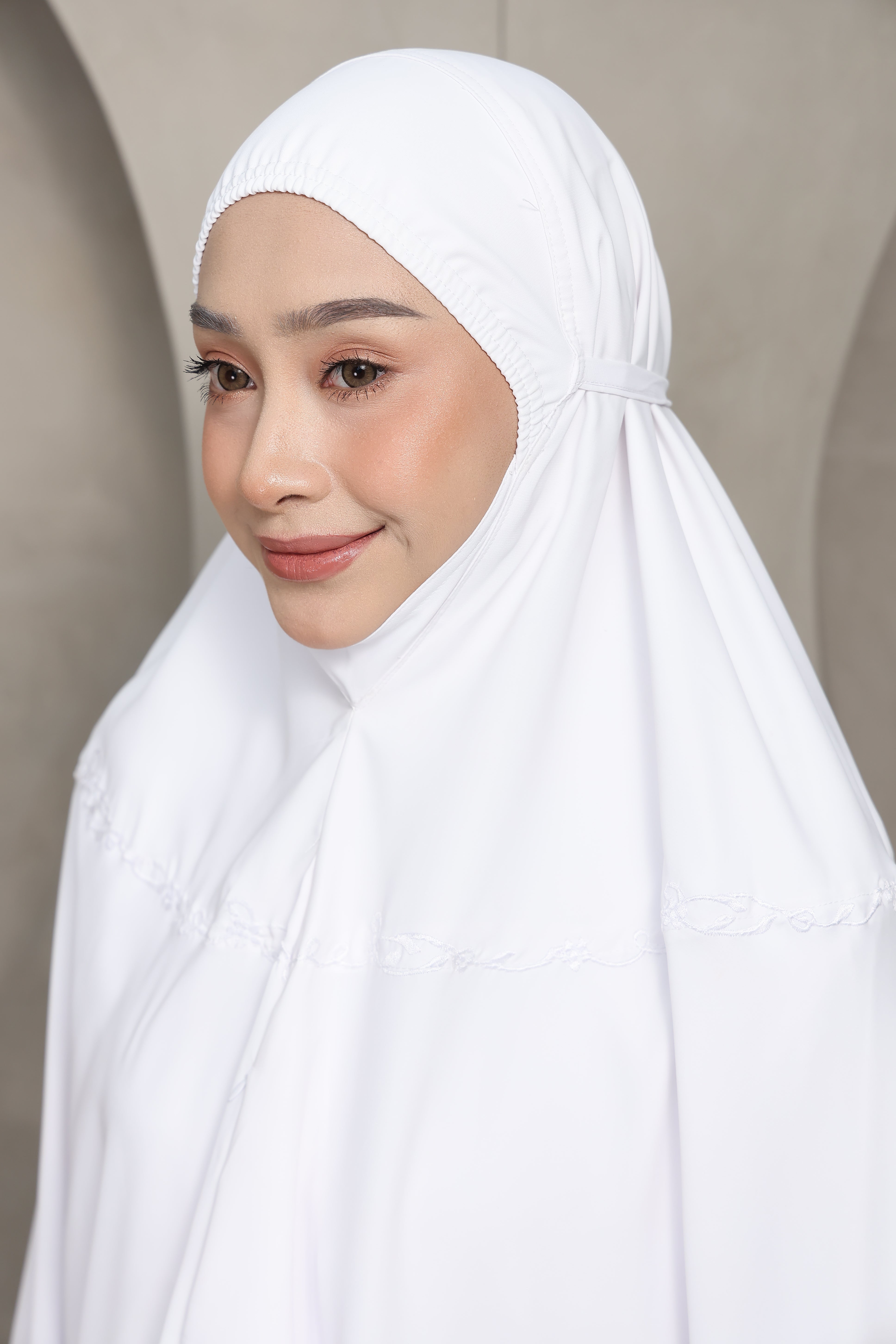 Faraza Zahra Telekung Yasmeen (Soft Silk) in Pure White